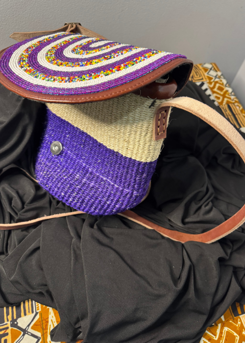 Make a bold and meaningful statement with this stunning beaded crossbody pouch. Handwoven in Kenya using vibrant purple sisal and adorned with intricate Maasai-inspired beadwork this piece is a true celebration of color culture and craftsmanship.